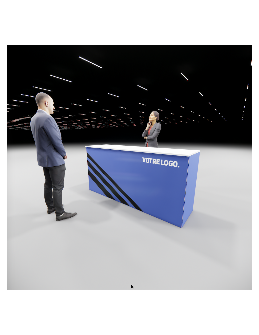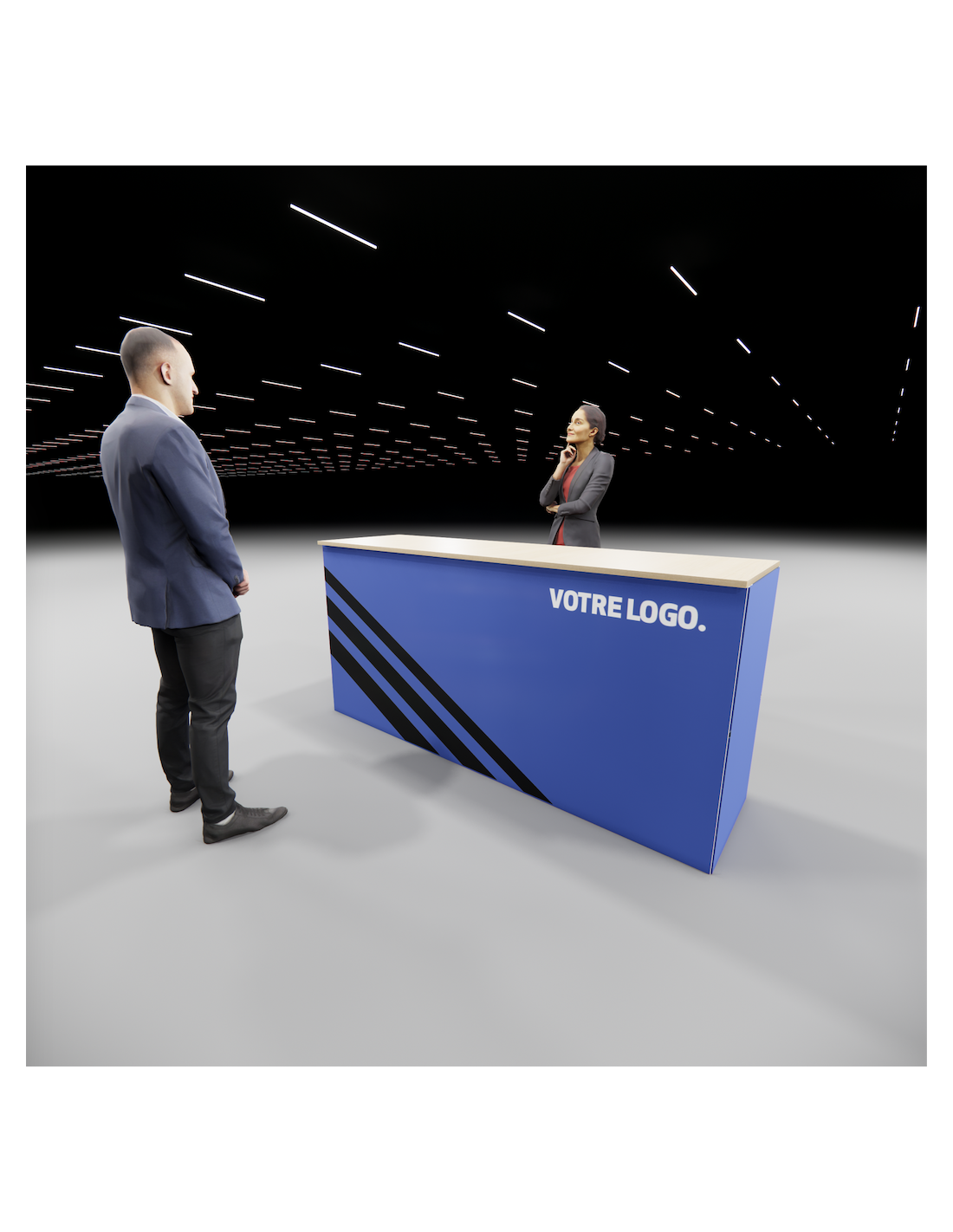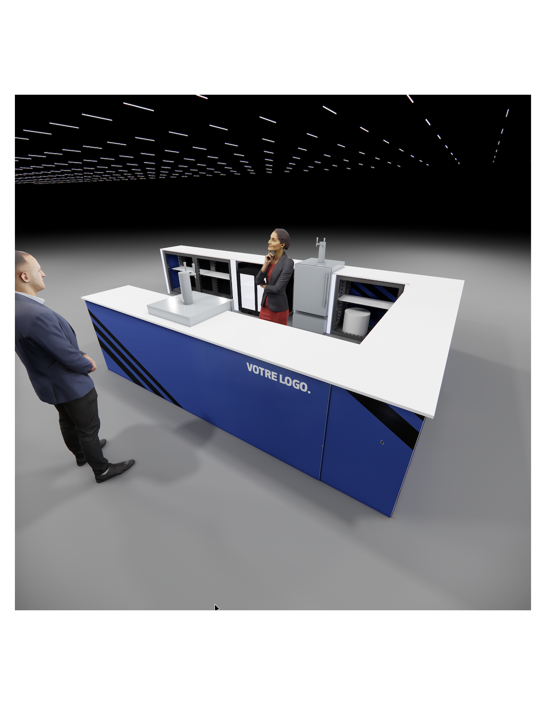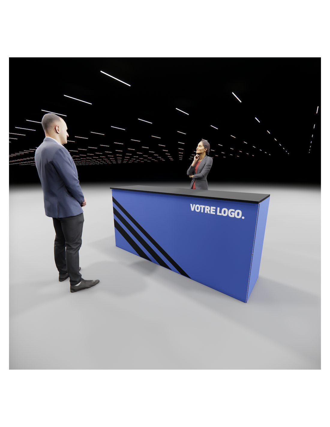 Possibilité d'assembler les différents comptoirs de la gamme entre eux pour former de grands ensembles réceptifs. Merci de nous transmettre un croquis de la configuration souhaite